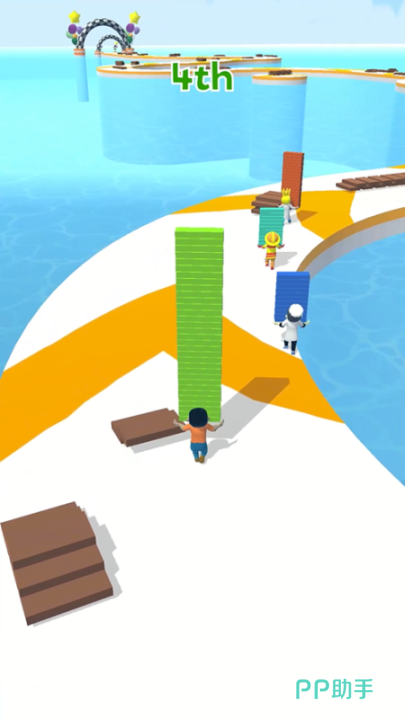 该玩法复刻经典竞速闯关模式,玩家需在赛道各区域收集散落的木板或彩色方块,用于即时搭建通行桥梁。支持单人闯关与多人对战两种模式,难度随模式切换动态调整。材料放置位置直接影响角色通行稳定性,需结合地形特征进行最优部署,确保角色稳定抵达终点。