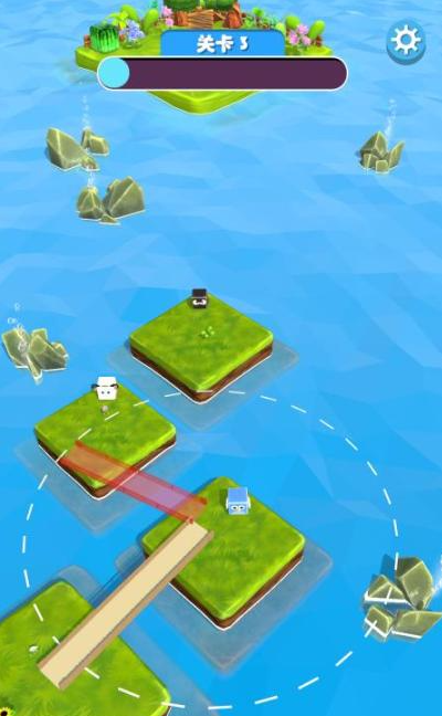 玩家需协助卡通形象的小牛跨越河流,核心操作为搭建浮木或平台组成的临时桥梁。操作节奏需精准把控,尤其关注小牛跳跃时机——延迟或提前均可能导致落水失败,影响整体通关效率。