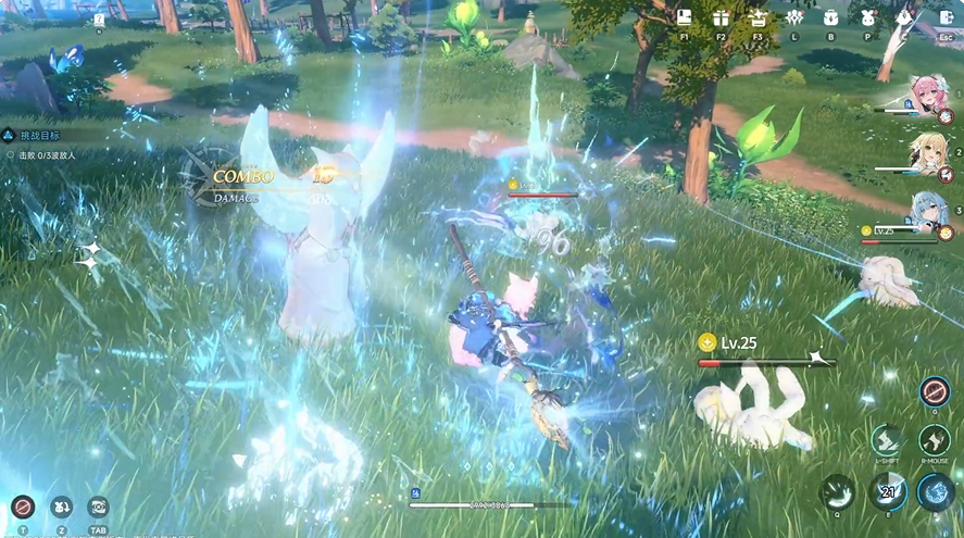基础普攻名为“涟漪之舞”,共三段连击,最高可造成563%攻击力的水属性魔法伤害;第三段命中后长按攻击键,可缩短重击蓄力时间,重击同样附带水属性魔法伤害,且蓄力时长与最终伤害呈正相关。