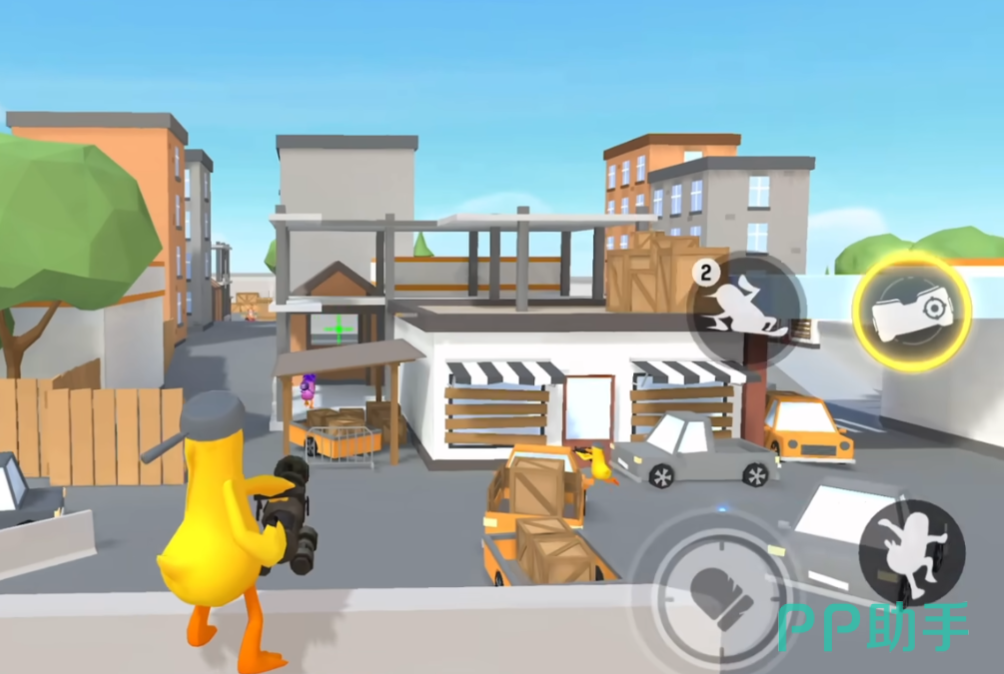 战斗机制以高频次、广覆盖式AOE输出为核心设计逻辑,弱化瞄准精度依赖,强调节奏感与清场爽感。角色建模采用Q版卡通风格,体型紧凑、动作幅度大且富戏剧张力,整体氛围轻松诙谐。游戏中可切换载具模式,驾驶坦克参与战斗,但受限于移动迟缓、转向笨重等特性,易被集火锁定。推荐策略为:前期依托坦克火力压制密集区域,待敌方人数锐减后及时切回人形状态,转为高精度远程狙击,提升单体击杀效率与战场控场能力。