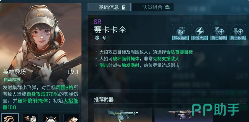 希·西雅大招总倍率729%,侧击状态下伤害提升25%,兼具对单压制与对群覆盖能力;解锁专精后附带全队增伤效果,配合部署物叠加可实现指数级伤害跃升。赛卡卡大招具备掩体摧毁特性,重击与侧击均可触发范围溅射,专精升级后回能效率与重击倍率同步提升;与希·西雅组合可激活沙鹰模组,进一步放大侧击收益。伊莱塔大招单次倍率突出,附带击退叠伤机制,适合后手补刀或定点狙杀高威胁单位,突破三阶后为指挥官提供常驻增伤Buff。芮尼为全游戏唯一低费医疗单位,通过任务免费获取,大招自动识别低血量队友施放治疗,泛用性与性价比极高。