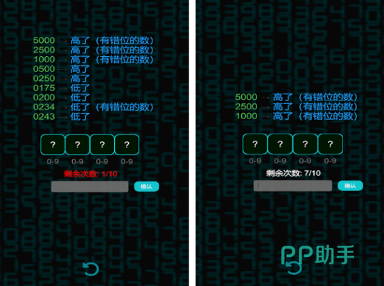 一款基于概率与逻辑推演的数字密码破解游戏。系统随机生成四位不重复数字密码,玩家拥有10次猜测机会。每次输入后,界面即时反馈“数字正确且位置正确”(A)与“数字正确但位置错误”(B)的数量,辅助玩家快速缩小候选范围,训练抽象建模与信息整合能力。