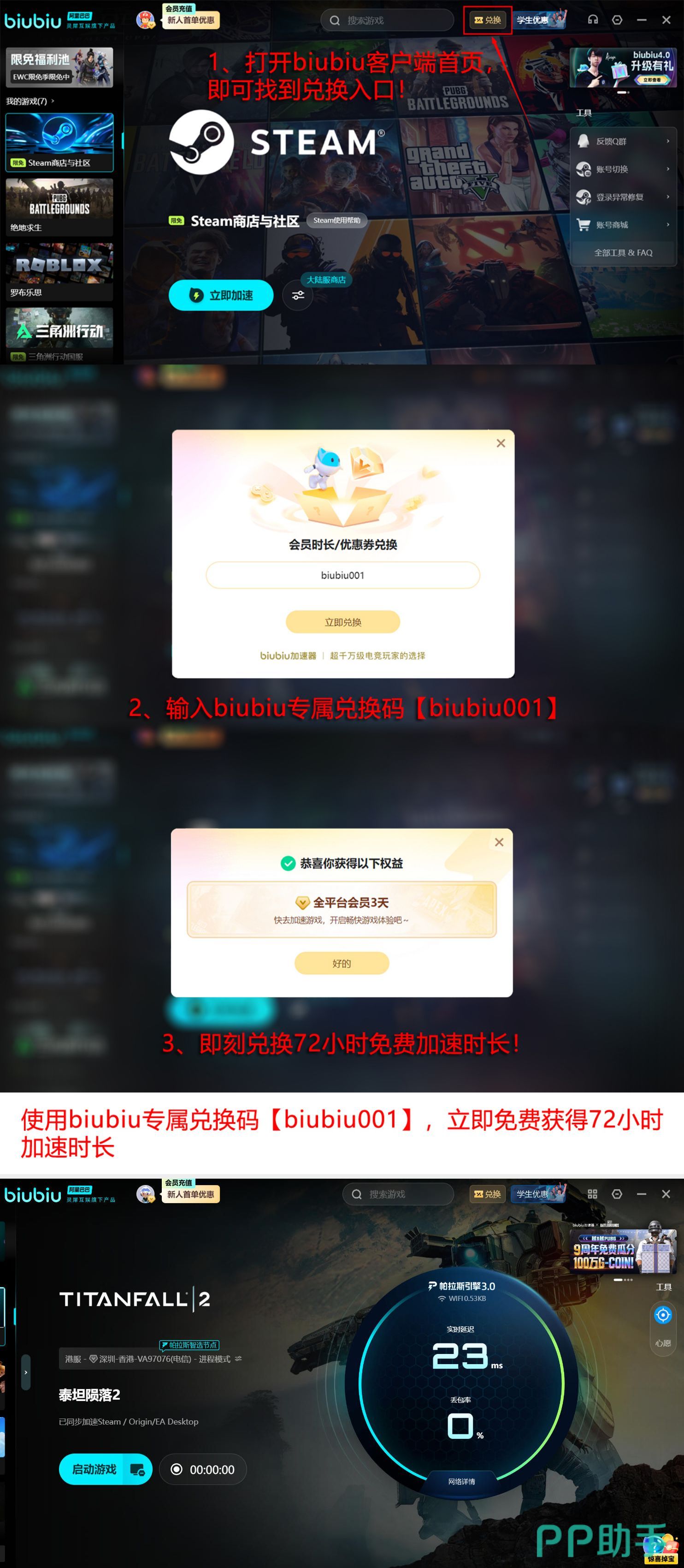 技术底层依托阿里巴巴灵犀互娱自研帕拉斯3.0引擎,集成动态路径规划、毫秒级路由切换与拥塞预测算法,在复杂网络环境下实现高效数据传输。新用户注册即可获赠24小时全功能加速时长;所有用户输入激活码【biubiu001】,可额外领取三天免费加速权益。新用户叠加使用两项福利,最高可享96个小时连续加速服务。