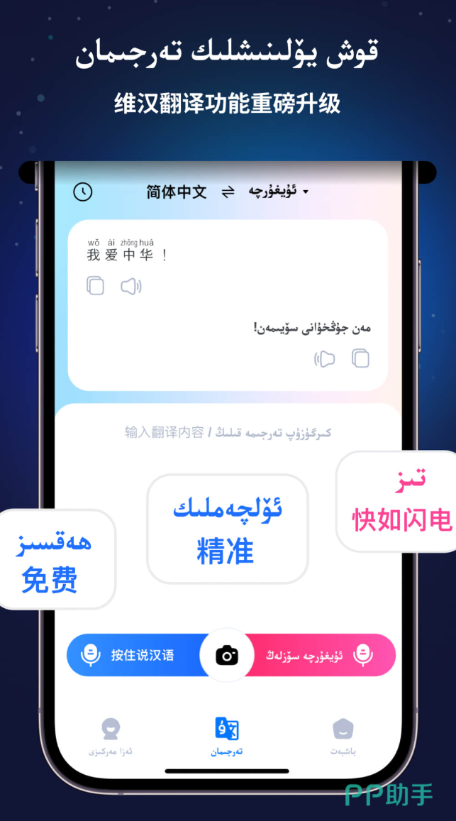 面向多民族语言使用场景,全面支持维吾尔文、哈萨克文、柯尔克孜文、中文及拉丁字母五种文字体系的独立输入与双向互译。键盘布局依据各语种书写习惯专项适配,切换响应无延迟。集成OCR图文识别模块,可对截图或相册内图片进行文字提取,并即时完成跨语言翻译,适用于双语教材整理、政策文件研读等实际用途。应用界面提供中文、维吾尔文、哈萨克文、柯尔克孜文四套完整本地化版本,菜单层级与操作动线贴合目标用户认知习惯。主题皮肤、字体大小、色彩方案、键盘布局均可自由组合配置。