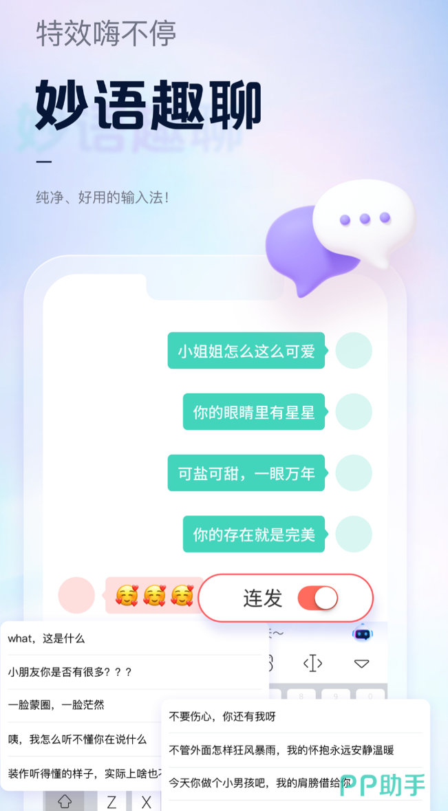 专为社交平台内容创作者优化,重点解决朋友圈、公众号推文因格式压缩导致的文案折叠问题。内置三类粘贴策略:纯净模式(去除隐藏控制符,保障原文完整展开)、签名模式(自动添加分隔符与署名)、直粘模式(保留原始排版)。语音识别准确率标称为98%,支持离线语音转文字;提供高度自定义界面系统,包括按键音效、主题壁纸、交互动效调节;内置小字、花漾字、图片字等文本渲染样式;Emoji与颜文字资源库更新及时,支持斗图快捷插入及自定义图包管理;单手操作区域可自由设定,快捷短语支持跨设备同步。