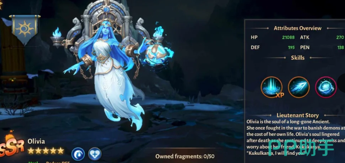 横向对比水元素SSR军官序列,卡伍德的功能定位明显受限。死亡骑士凭借无敌帧衔接与全队伤害增幅,稳居S级梯队,是高难本与巅峰竞技场的常驻首选;恶魔之狼依靠精准斩杀阈值与短CD爆发能力,在推图效率与PVP压制力上表现突出;奥利维亚则融合群体治疗、敌方防御削减与状态净化三重功能,显著拓展了辅助型军官的战略维度。相较之下,卡伍德既不具备死亡骑士级别的生存兜底能力,也缺乏恶魔之狼的节奏掌控力,更未达到奥利维亚所实现的攻辅协同高度。