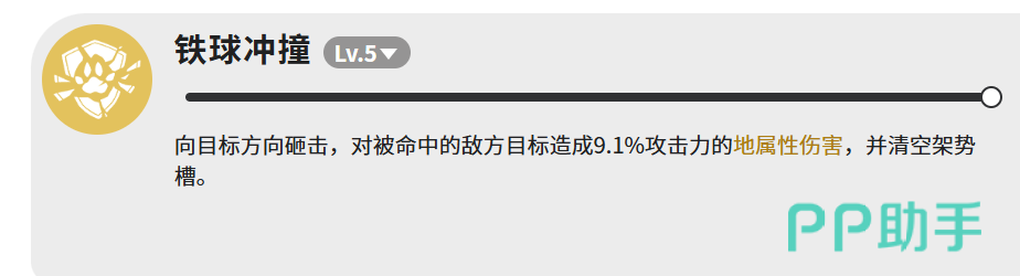 铁球冲撞为机制型控制技,表面伤害倍率仅为9.1%,但核心价值在于强制清空目标当前架势槽。在《蓝色星原:旅谣》战斗系统中,架势槽满值常触发敌方强化状态或特殊行为逻辑,因此该技能实质承担着打断节奏、遏制威胁的关键职能。建议保留至敌方架势槽即将溢出时精准释放,避免过早使用导致战术窗口错失。