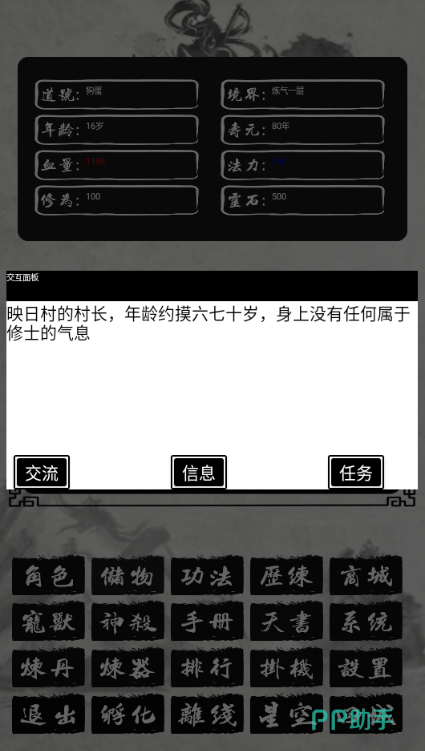 本作以水墨国风为视觉基调,摒弃繁复特效,全程采用精炼文字推进剧情与交互。玩家从凡俗之躯起步,通过打坐调息、采集灵药、参悟功法等传统修真行为逐步突破境界。战斗系统严格遵循经典回合制规则,每一场对决都需权衡技能释放顺序、属性克制与资源管理,真实还原“十年磨一剑”的修行沉淀感。
