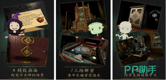 采用PBR渲染技术构建写实级3D密室空间,初始场景为全封闭木质书房。所有交互均基于精细建模的机械装置——黄铜齿轮组、可旋转星图仪、多重嵌套密码盒等。核心解谜工具“棱镜目镜”具备三档焦距调节功能,分别用于识别紫外线隐痕、红外热源残留与微米级刻痕,大幅提升线索发现效率。关卡难度呈阶梯式递进,后期需同步操控多个独立运行的物理系统方能开启最终出口。
