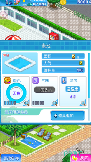 开罗社经典像素风模拟经营系列新作。玩家从零起步建设专属水上乐园:铺设滑道、配置造浪池、开设冷饮摊与更衣室,逐步解锁温泉区、夜间灯光秀等高级设施。经济系统真实,需平衡门票定价、员工排班与游客满意度;随机事件(如台风、明星到访)增添变数。无体力限制、无强制社交,节奏舒缓,适合碎片化时间沉浸经营。