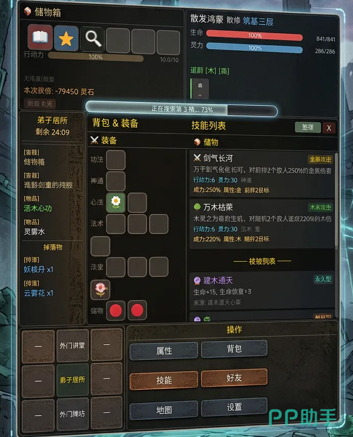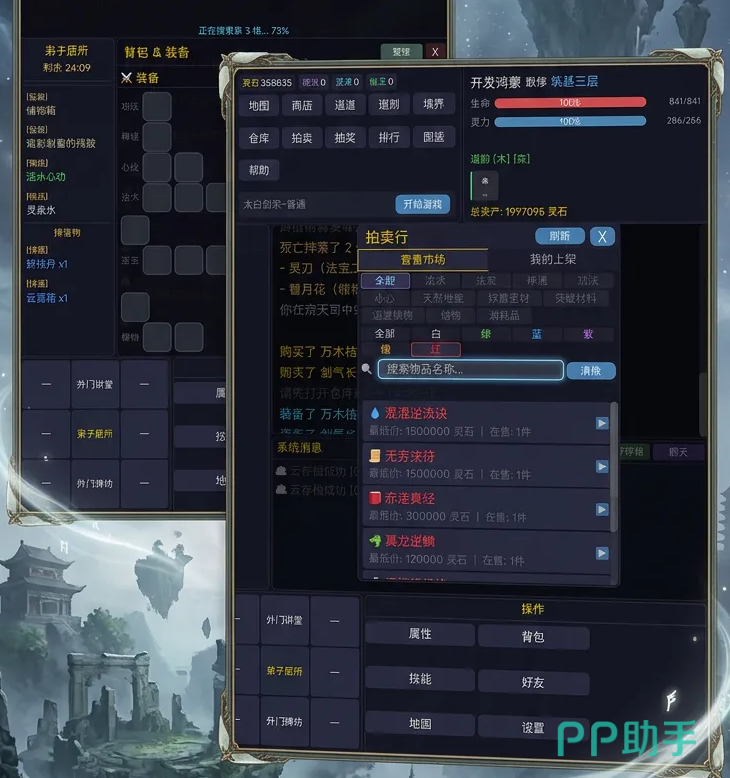 游戏初期需重视地图探索效率,优先拾取高价值物资,尤其关注稀有材料、灵符残卷及可交易法宝。这些物品可在宗门拍卖行中挂牌出售,所得灵石将作为修仙资本的重要来源,支撑角色境界突破、丹药炼制与阵法布设等关键成长环节。