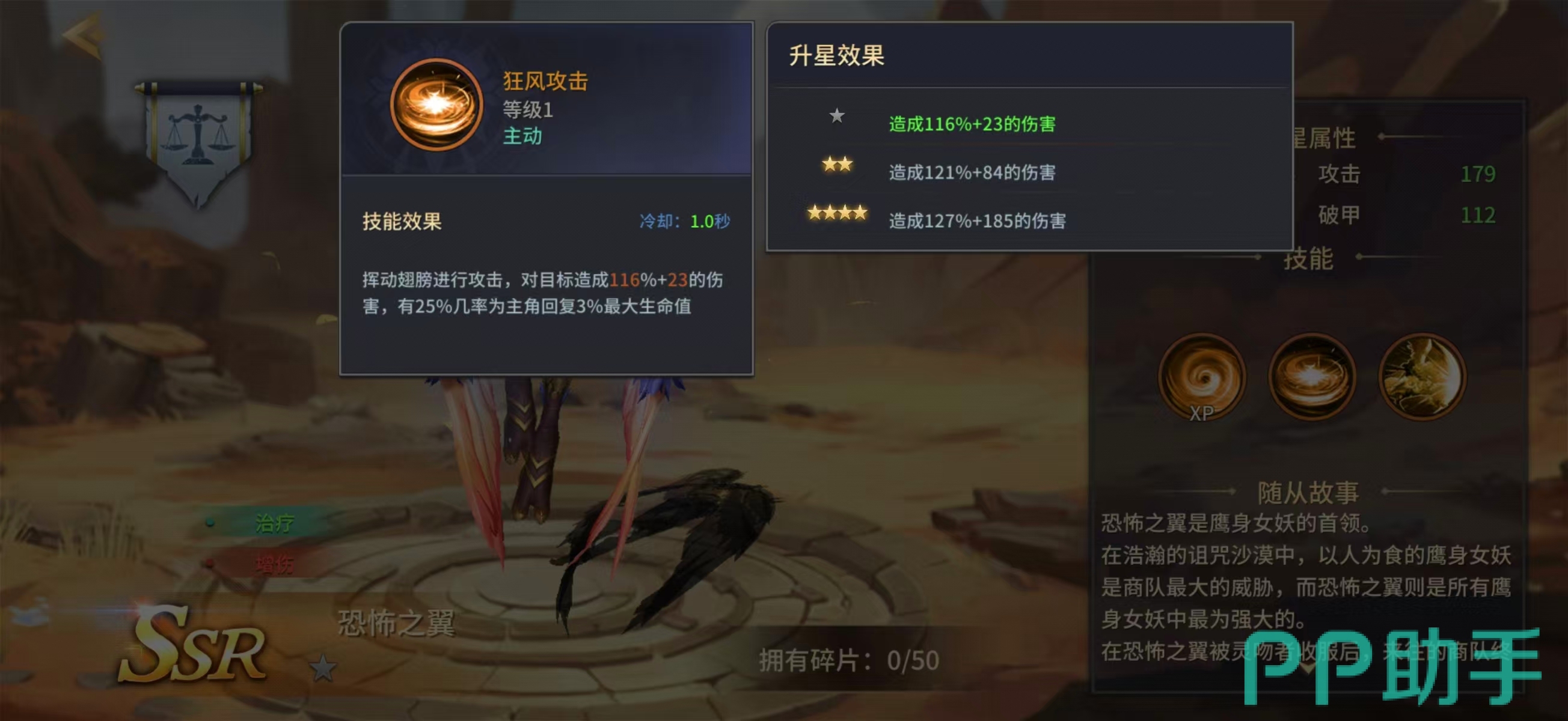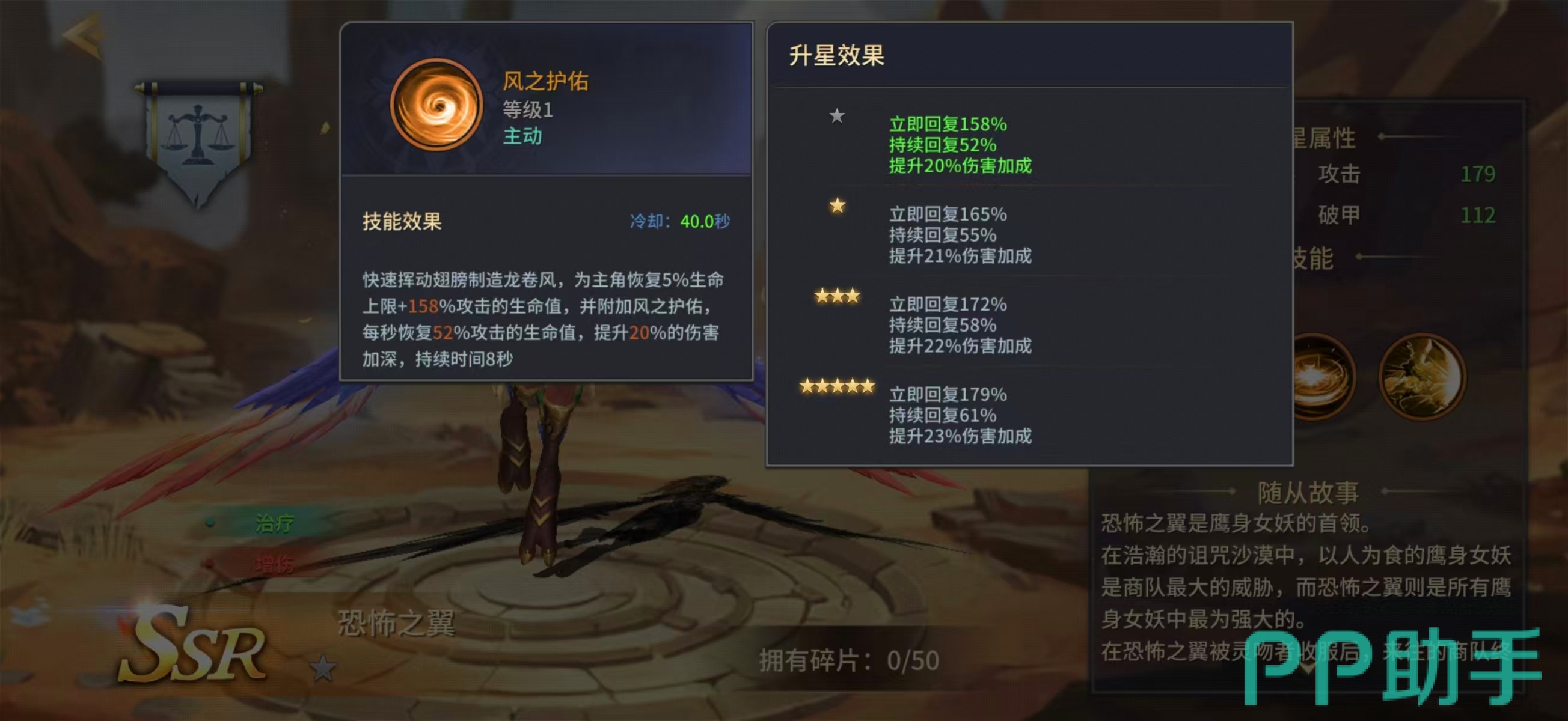 从外观设计来看,恐怖之翼融合了鹰身女妖的经典元素,但整体建模与特效表现更具品质感,符合其SSR稀有度定位。其核心定位并非输出担当,而是以持续治疗、高频回血与关键增伤效果支撑主C发挥。技能体系围绕“节奏性续航”与“爆发式支援”双线构建,适配多种主流队伍结构。