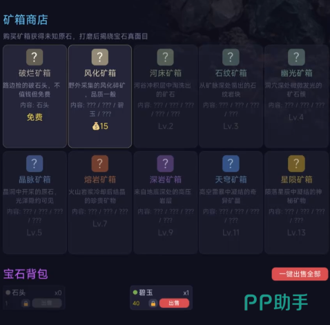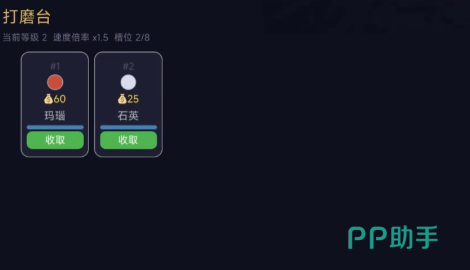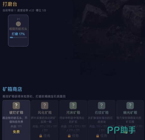 每位玩家初始配备一台基础打磨台,可用于对采集所得矿石进行初级加工。经打磨后,部分原石存在概率转化为具备价值的宝石。这些宝石既是角色能力进阶的关键材料,也可用于市场交易,是推动经济系统运转的核心资产。
