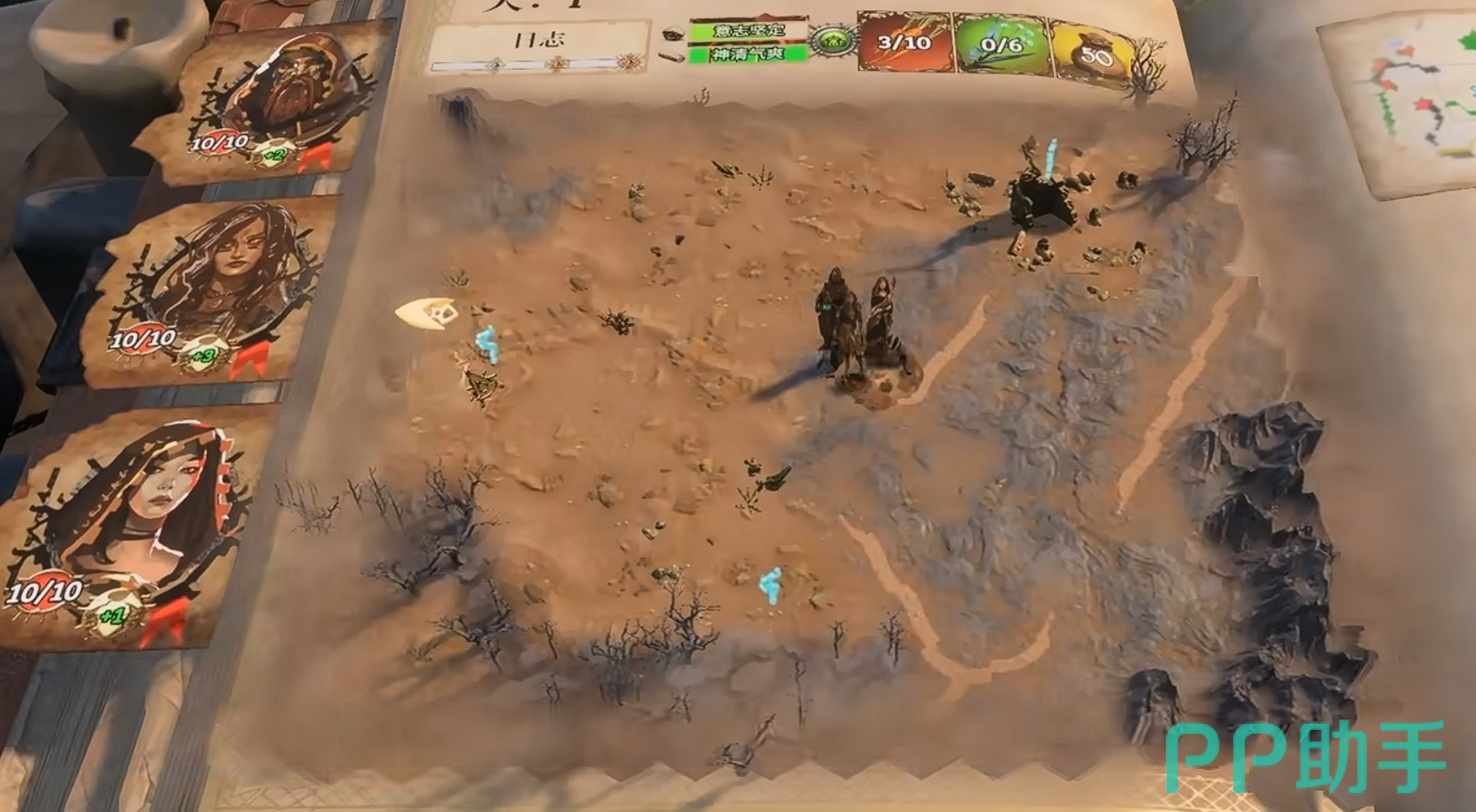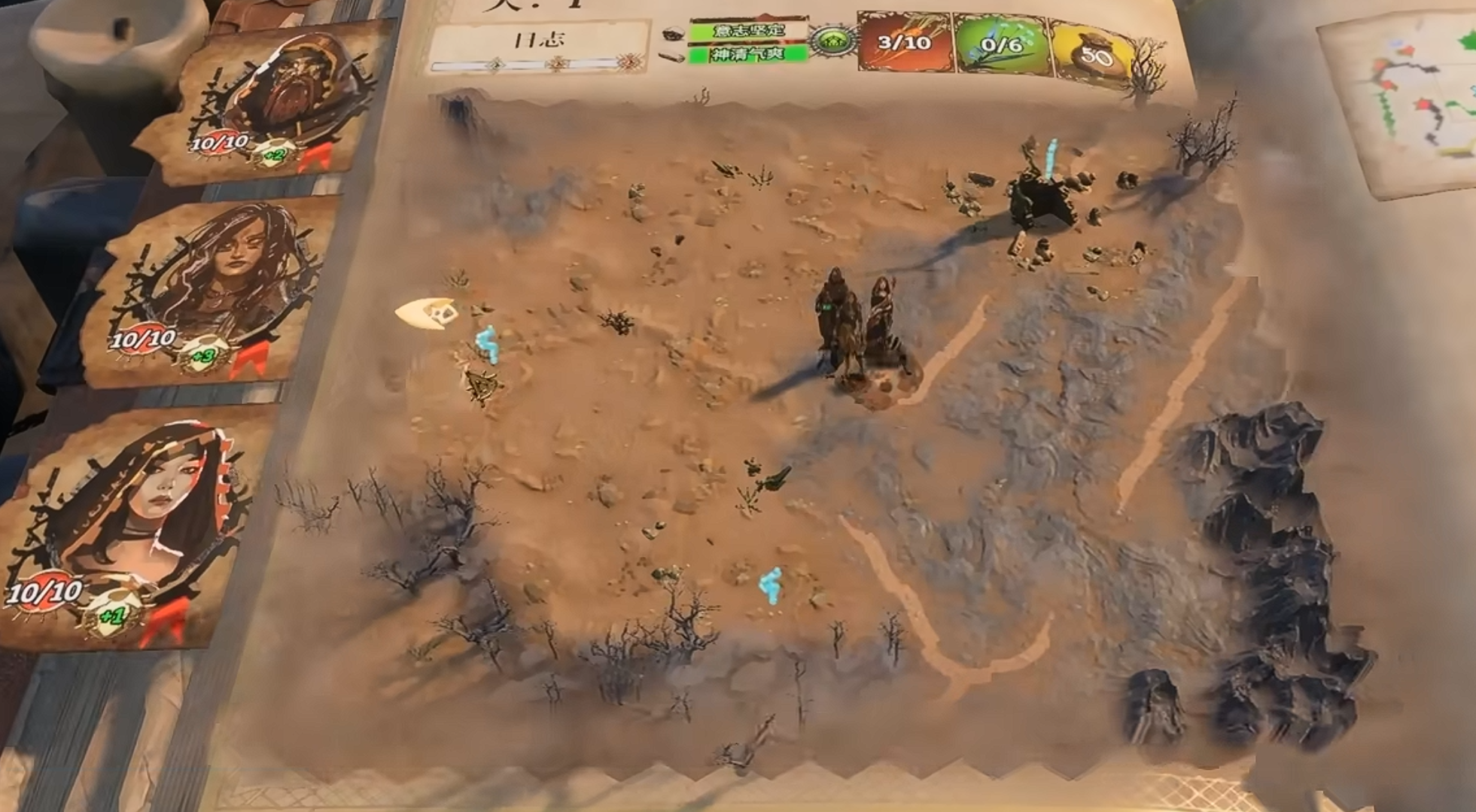 《火焰审判》剧情的呈现方式非常独特,可从图中看出,整个画面像是在一本书上进行,地图、菜单都在淡黄色羊皮纸上铺开,砂岩地区崎岖不平的路面和背景的黑石山都凸显着3人小队探险路上自身与他人的命运都飘忽不定之感。三个角色的手绘立绘于左边展示。说完其优质的美术与剧情设计,《火焰审判》爆火的原因众多,核心的战棋玩法是最关键的一点。游戏内七大职业各有团队定位,却也能跳脱出定位,牌组构建自由度极高。