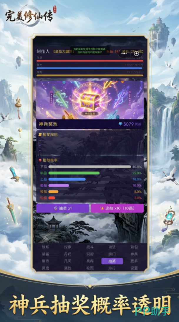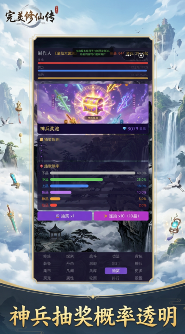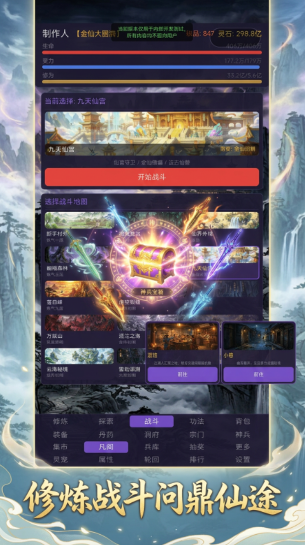 本作内置25+深度玩法模块,覆盖日常历练、宗门争锋、秘境探幽、天机推演、灵兽驯养、法宝淬炼、阵法布设等多元维度。月卡权益永久生效,持续提供灵石、悟道丹、轮回点等核心养成资源;每日签到、限时任务、周常挑战形成稳定资源回流闭环,确保零散时间亦能高效积累实力。设计兼顾长线规划与轻度操作,付费与非付费玩家均可依托策略深度获得同等成长满足感。