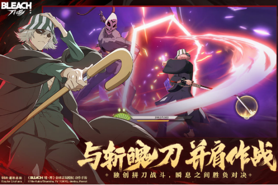 由集英社与KLab联合监制的官方正版授权作品。玩家可自由选择黑崎一护、朽木白哉等数十位人气角色组建小队,深入还原动画关键战役场景。采用精致2D横版卷轴表现手法,人物建模与场景细节高度贴合原作画风。战斗中支持角色即时切换、技能组合释放及连招判定系统,兼顾策略性与操作爽感。