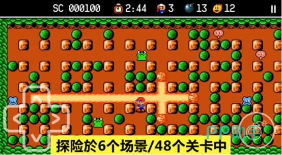 在众多街机作品当中,炸弹人采用怀旧像素风格,有真实的闯关模式,集结了大量武器和装备利用绝对的模式来消灭一切障碍,最终攻击对手。有超级丰富的关卡和探索设计,随着时间推移,和之后的关卡会相当困难,玩家需要有急速的反应能力以及预判能力,这样才能够完成战斗,游戏中的地图设计非常别致,也有超丰富的迷宫探索。