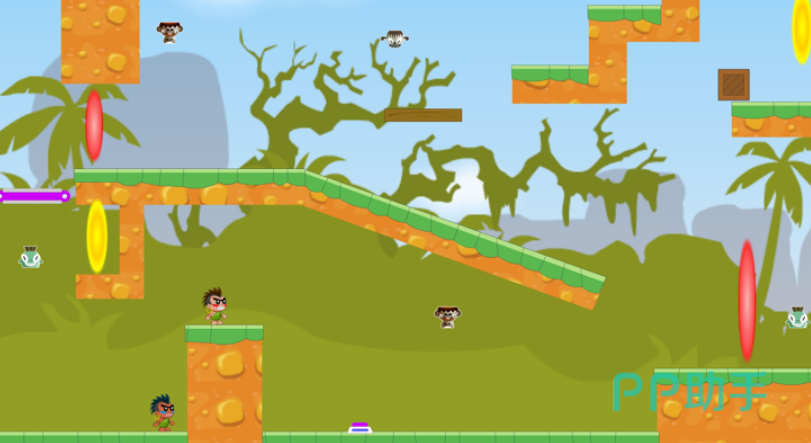 双人原始人兄弟是个类似于森林冰火人的闯关游戏,只不过将冰火人换成了原始人,两个玩家都会控制可爱的原始人兄弟完成闯关冒险,任务多样且节奏明快让很多双人游戏爱好者着迷,沉浸感拉满的原始人主题互动任务也很硬核,自由扮演原始人在原始地图上厮杀闯关的过程也相当刺激。