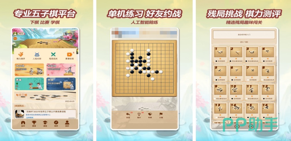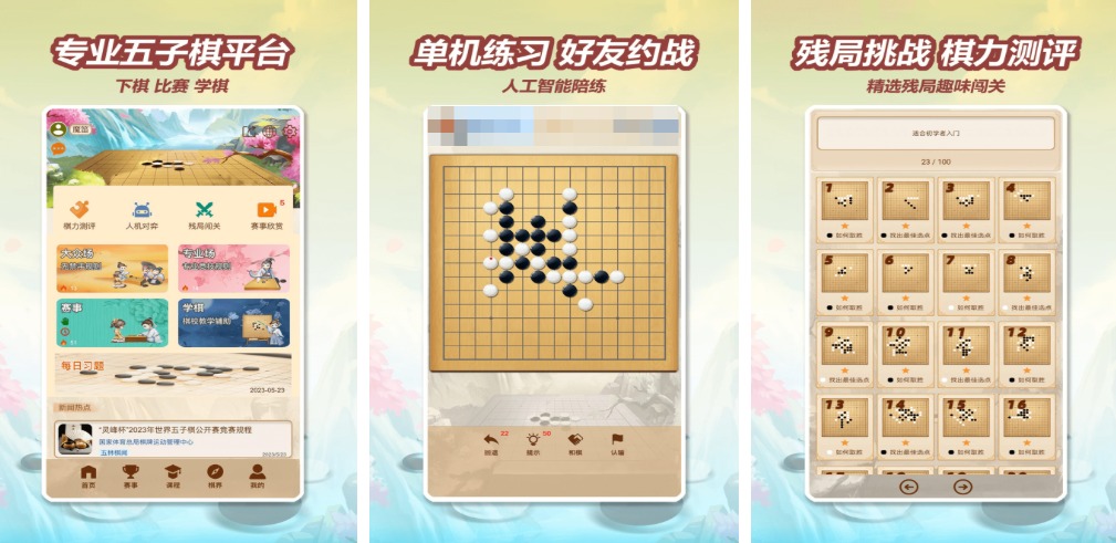 五林五子棋是款很专业的五子棋对战平台,拥有好友联机PK和单机博弈练习类型的特殊玩法,还可以挑战残局模式让自己的棋艺大大提升,更多的博弈任务和怀旧向的背景呈现都是游戏的特色,整体耐玩性不错也有着大量共闯关任务可以执行,双人博弈游戏爱好者不妨在五林五子棋中挑战棋手。