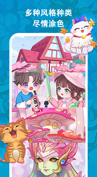 专为学龄前儿童设计的交互式美术启蒙工具。内置数十套主题填色模板(动物、交通工具、节日场景等),搭配调色盘、橡皮擦、放大镜等基础画具。除自由涂色外,还嵌入数字认知训练(如按序涂写1-10)、图形连线匹配、简单拼图等拓展模块,兼顾艺术表达与早期智力开发双重目标。