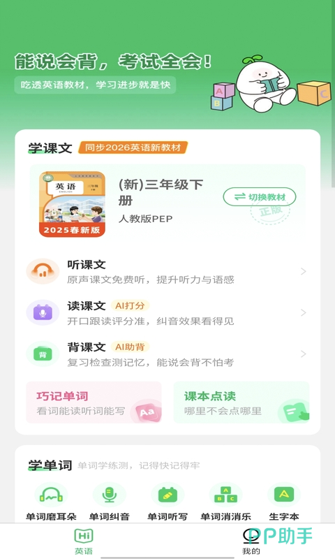 它融入了大量的经典美文,孩子可以通过故事了解到最基础的英语知识,同时上架了热门的单词书籍。你可自由切换到对应的教材,去听和读课文内容,以提升自己的语感水平。另外结合单词消消乐游戏让学生记得快、记得牢!