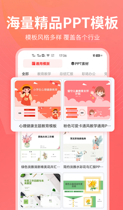 输入关键词或者大纲,系统能理解不同行业的表达习惯,生成出来的内容不会显得太通用。五千多套模板可以实时预览效果,一键套用,不用逐页调整。旧PPT可以用一键焕新功能重新整理排版和配色,不用推倒重来。素材库里有节日主题、图标、小清新等风格的素材,可以自由组合,调整颜色和字体也方便。PDF、Word、图片之间的格式转换都支持,做完直接分享到社交平台也行,演讲稿生成功能对需要上台讲的人来说也挺实用。