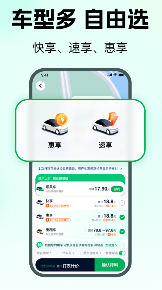 网约车市场里,安全问题一直是用户最在意的一块。T3出行在这方面下了不少功夫,公安背景审查、人脸识别认证、行程中的驾驶行为监测,加上车内报警按钮,五重防护叠在一起,每辆车还投了500万的承运人责任险。车队全部自营,车龄控制在三年以内,司机是全职的,服务流程有统一标准,不会出现私家车混进来的情况。语音叫车功能支持口语化表达,说清楚目的地就能下单,不用反复输入。