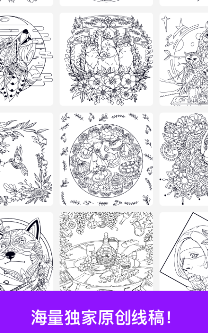 从相册里导入一张照片,就能生成一张专属涂色页,这个功能让创作多了点私人色彩。软件工具涵盖油漆桶、记号笔、钢笔等基础选项,压力感应画笔对线条粗细有响应,配合20余个主题色盘与160余种色彩,自定义配色和渐变效果都支持。线条矫正功能会实时处理抖动问题,画出来的线条比手抖时稳得多。