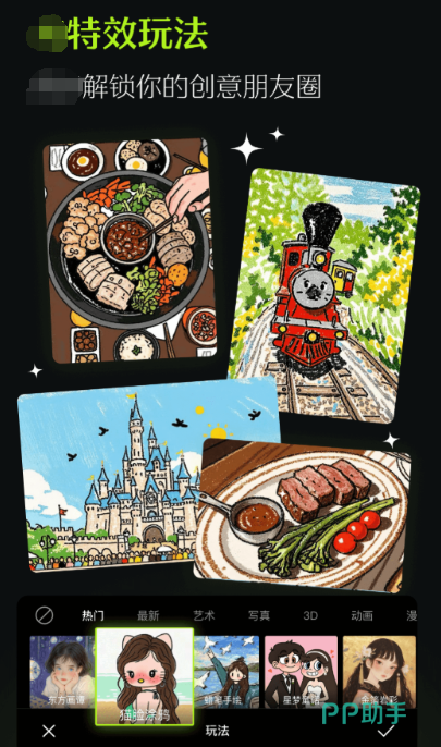 以前火遍全网的媚娘装、年代照,都是该软件的拿手好戏,自拍有超多萌系贴纸和实时的美妆,一键就能瘦脸大眼、化淡妆,不用手动调整,效果超级的贴合喔。还能做GIF表情包、做故事拼图等。