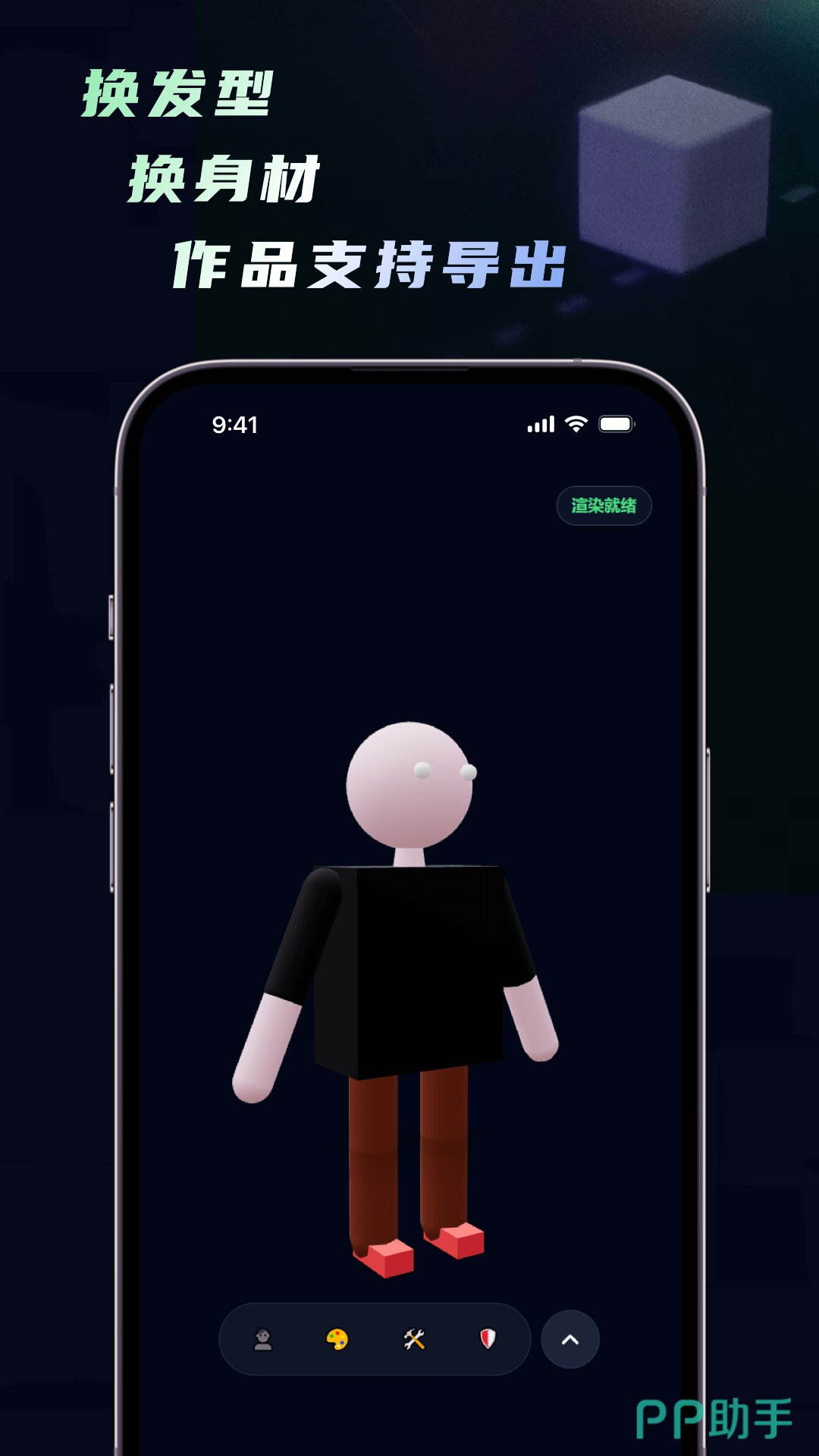 它主打个性化人物打造,不用懂专业技巧,滑动屏幕就能调节人物的头部尺寸、躯干比例,还有超多发型、服装、肤色可以自由搭配,一键就能生成专属虚拟形象。支持GLTF以及GBL两种不同的导出格式,设计的自由度很高,超过几十个维度可编辑。