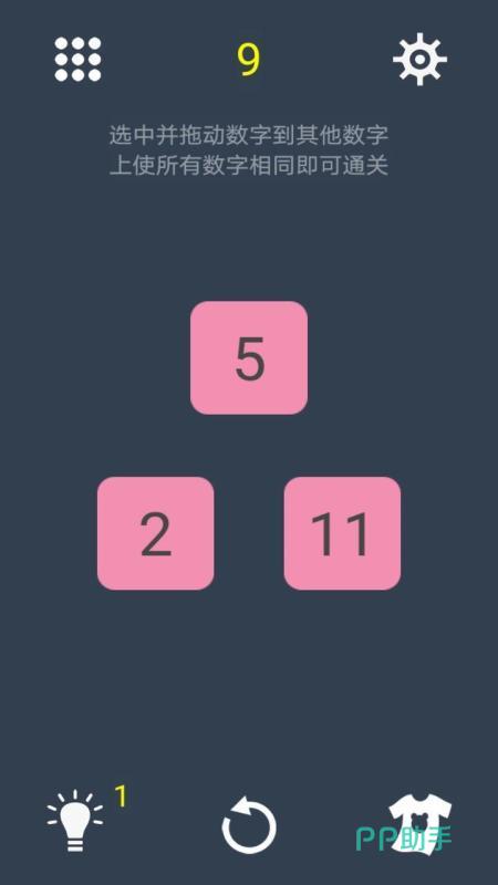 每一关都会随机出现几个数字,将屏幕上的数字拖动叠加,使得最后屏幕上的数字为同一个数字即算成功。偶数被分裂时会分出一半数字给另一个数字,奇数分裂时会全部分去另一个数字,根据这一规则,玩家要灵活运用,综合计算使得最终数字成为全部相同。灵活考验玩家的算数和编排能力。