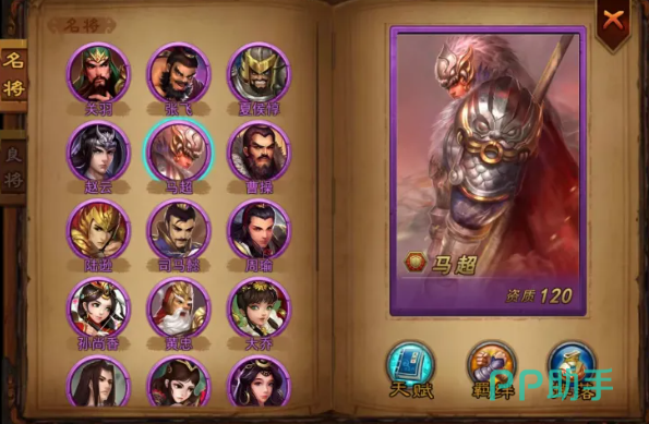 这里给大家推荐的第1个武将就是马超,马超虽然是作为紫色品质当中的一个前排角色,但是他在所有的坦克里面具有的优势还是非常明显的,因为只有他作为坦克还有一定的控制能力,技能效果当中对敌人造成伤害之后也可以伴随着击飞的控制能力,对于被动能力触发的同时,马超还可以减少自身受到的伤害,所以在这里,他的抗压能力还是非常不错的,大家如果要获取马超的话,在精英关卡里面第8章就可以获取他。