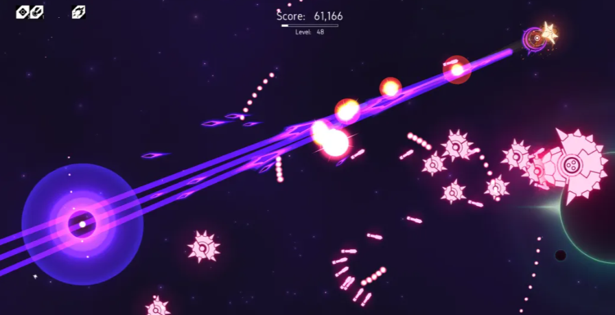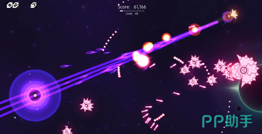 如果是对幽灵导弹比较感兴趣的话,它也是一个流派当中的核心内容,就是流派还没有搭配完整的时候要注意自己不能意外被攻击,这里大家先用幽灵导弹来输出是没有问题的,然后用巨星-超荷弹-分裂弹,追踪-制导-汇聚,快速射击-连射,弹速-校准,炉火纯青,自稳定,机体强度-巨像-力场装甲,效率,适应性装甲,交锋-终结-汲萃,护盾耐久,护盾冷却,禅意20,整个过程当中是一共只有43个升级点的,之后再去打的话可以点出折跃弹,整个能力要点出来其实大家一共需要的只有4个升级点,所以大家可以考虑一下,如果想要保险一点的话,这里就可以点反斥-核心屏障和转化,但是这样点之后就要注意这里的开炮时机一定要保证是处于隐形状态下的,如果不好确定的话,大家也可以看校准的缩圈,保证自己在挨打冲刺的时候不会失去隐形,整个过程这也不能开炮,打小怪大队的话建议大家是不要等太久,否则满屏都是炮弹的时候走位就比较难了。