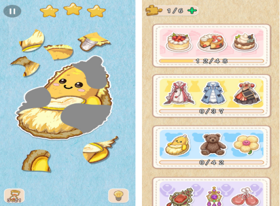 这款是能让大家在充满着3d的拼图游戏当中,将碎片化的拼图放在合理的位置上以后,成为完整的。有让人闪闪发光的各种碎片,无论是美味的草莓蛋糕,或者是女孩子们非常喜欢,充满着梦幻般的蓬蓬裙服装等,大家都可以利用每次闯关时的碎片,拼凑成完整的画面以后完成相应的任务,带给大家充满着浪漫以及温柔的游戏体验。