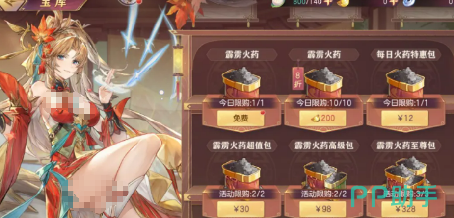 关于「霹雳火药」的获取,活动期间每天可以在【宝库】里免费领一个,算是每日签到的感觉。如果想多打几炮,也可以花元宝购买,活动期间打了八折,原价250元宝,现在200元宝一个,每天最多买10个。有一点要注意,「霹雳火药」是限时道具,活动结束之后会直接删除,用不完也不会保留。所以活动期间领到的、买到的,尽量在3月23日之前用掉。