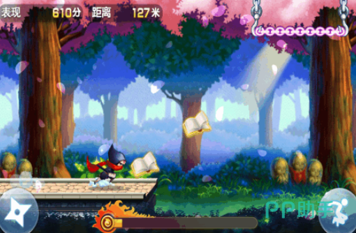 以日式忍者文化为叙事基底,采用横版卷轴视角呈现高速纵向奔跑体验。主角具备攀墙、二段跳、瞬移闪避等特色能力,沿途收集手里剑、卷轴与樱花币,用于强化技能等级或更换流派外观。距离越长,结算奖励越丰厚,对操作精准度与反应速度提出明确要求,适合追求操作上限的硬核玩家群体。
