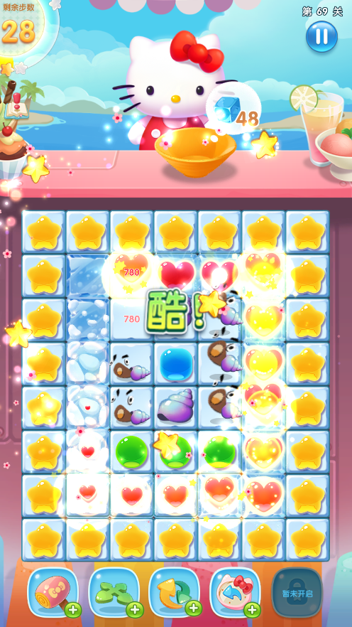 这是一款以三丽鸥IP角色为载体的三消类作品。基础规则为横向或纵向连接两个及以上同类型角色方块实现消除;达成特定组合条件时可激活角色变身特效,伴随柔和光效反馈增强视觉沉浸感。游戏中可获取并穿戴包括草莓裙、蝴蝶结头饰在内的数十款限定服饰,这些外观不仅具备展示价值,更拥有功能性加成——如提升连锁消除范围、清除障碍物或延长技能持续时间,显著影响关卡通关效率。