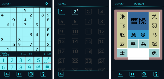 整合多种经典益智范式:数独模块提供从入门级3×3到专业级9×9全阶难度,所有数字布局均满足行列及宫格唯一性约束;华容道子系统则采用物理引擎驱动的滑块碰撞模型,目标为将标注“曹操”的主块沿预设轨迹移至出口区域,移动步数与路径规划直接影响通关效率。