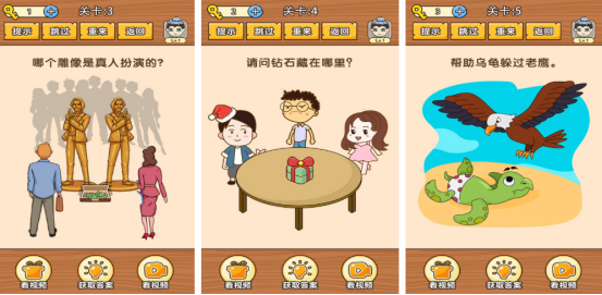 本作以高度不可预测性著称:每关谜题类型随机生成,涵盖视觉辨识、行为逻辑、时间压力等多重维度。例如在“真假雕像”关卡中,两名静态人像仅在细微动作节奏与微表情上存在差异,玩家需在倒计时内完成判断,无法依赖经验复用,必须实时调用逆向思维进行验证。