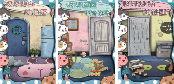 延续系列核心玩法,共设100余间主题独立密室,每间房具备完整视觉体系与专属谜题逻辑链。线索隐藏方式覆盖环境纹理、光影投射、物品材质反光等多维度,部分关键道具需通过多次视角旋转或特定时间点观察方可显现,强调系统性观察与跨场景信息关联能力。