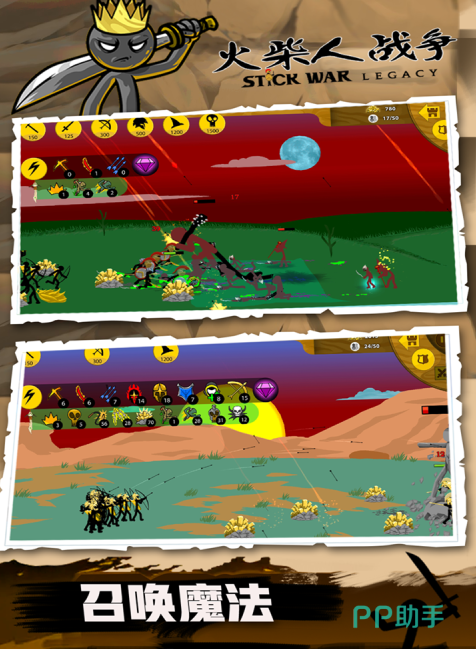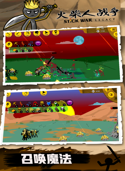以极简线条勾勒火柴人军团,却构建出包含兵种训练、科技树研发、资源采集与多线作战的完整战争模拟框架。玩家既可固守基地布置箭塔、法师塔等防御工事,也可主动出击组建矛兵、弓手、法师混合编队发起反攻。经济系统与战斗节奏高度绑定,强调实时决策与战局动态调整,是融合塔防与即时战略要素的复合型代表作。