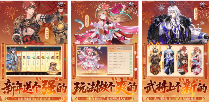 以“幻想”为切入点重构三国世界观,主打高精度美术建模与全语音配音。全武将实装动态Live2D效果,技能释放伴随粒子特效与镜头运镜,战斗演出层次丰富。卡牌养成线兼顾策略性与轻度操作,阵营克制、羁绊组合、神兵系统构成多维战术维度。剧情章节采用电影化分镜叙事,增强代入感。