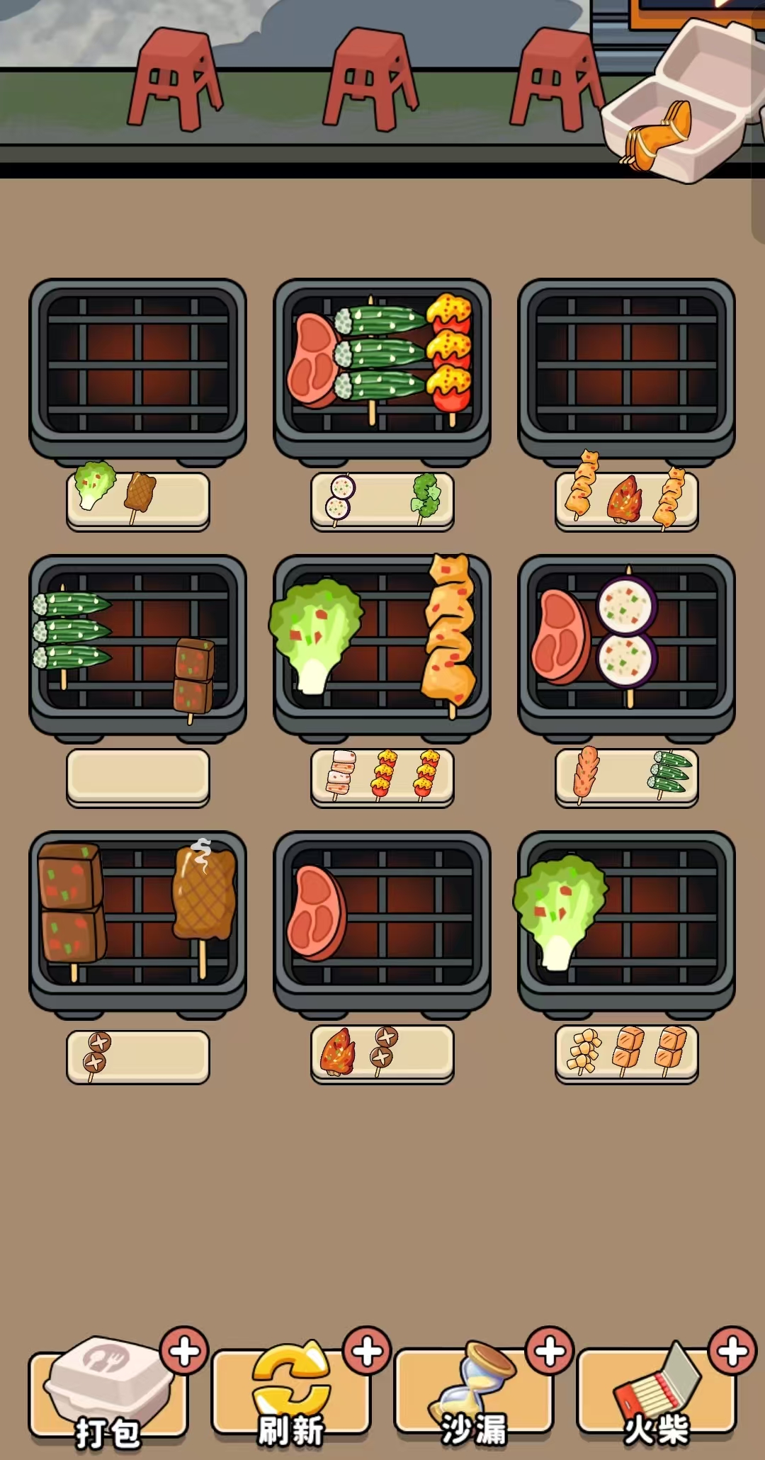 本作聚焦街头烧烤摊经营场景。玩家需按类别归集食材(如肉串、蔬菜、海鲜),每组三支即可打包交付。关卡设计循序渐进:前期侧重基础分类,后期叠加多订单并行、限时加急、特殊口味要求等变量,考验手速与观察力。操作直观,反馈即时,适合短时间放松体验。