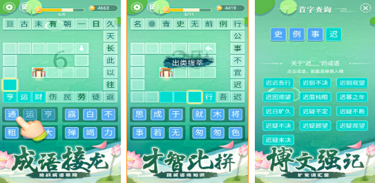 本作以阶梯式难度设计为特色,将成语学习融入沉浸式闯关体验。内置超3000个高频成语词库,覆盖日常用语、文言典故及中小学课标词汇。每完成一关,系统自动弹出该成语的精准释义、出处说明及典型用法,强化理解型记忆,显著优于机械背诵效果。