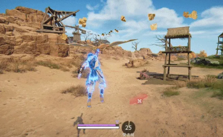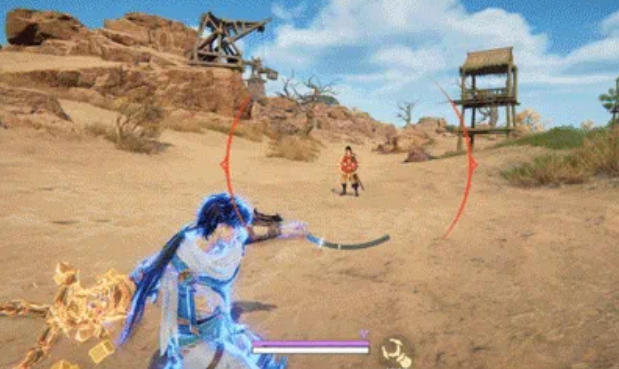 技能二就更有意思了。用这个技能会引爆机械臂,把自己弹射到空中开始滑翔。滑翔期间可以攻击、跳跃、振刀或者闪避,这几个操作都能提前结束滑行。所以这个技能不只是用来跑路的,也可以在空中接输出。打法上可以先弹射拉开距离,再从空中切入,节奏一乱对手就比较难应对。