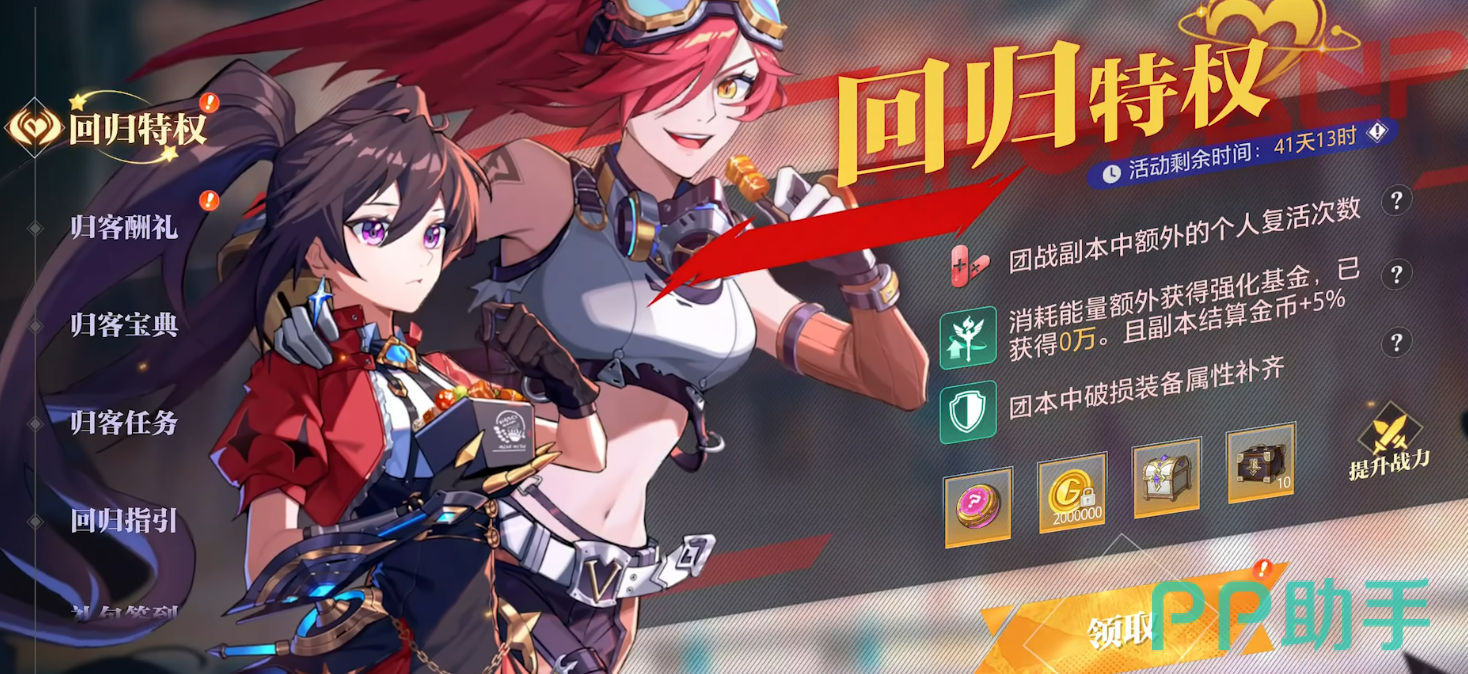 回归玩家这边也有专属活动,叫做回归阿特兰。破损的装备属性会自动补齐,消耗体力还有额外的强化基金,这对于久没玩、装备落后比较多的玩家来说省了不少事。解锁归客宝典之后,可以获取大量稀有养成道具,还有专属的回归团本助力,帮你快速把角色状态拉回来。登录也有好礼,具体内容进游戏看一下就清楚了。