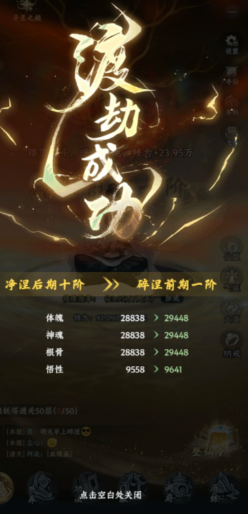 本作有着离线自动修炼机制,现实一日就等于闭关百年,不需要大家每日高强度上线,睡醒就能轻松拿到百年修为,再加上简单的竖屏操作,洞府建设、法宝淬炼等关键行为都能简单指尖滑点完成,利用碎片化时间变强,从炼体、筑基到金丹,享受境界跃迁的爽感。