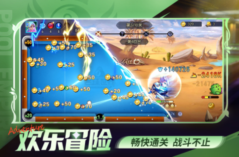 该游戏总共为你设计了数十款酷炫球杆,每根的属性加成都不尽相同,你能选到锲合自己的。游戏会让你尝到真正的斯诺克玩法,才令你玩个心满意足。游戏里的对手既可以是ai敌人,也可以是真人玩家。游戏令你无需花钱到台球俱乐部玩,在家就能纵享打台球的快乐,还能认识到新朋友。