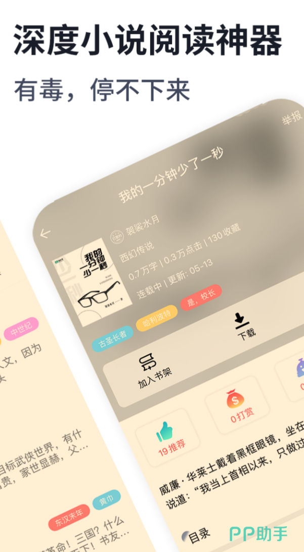 原创内容是它的底气所在,历史权谋、西幻史诗、仙侠长生,题材覆盖面广,且全部为首发作品,不搬运不凑数。书架支持智能分类,字体和夜间模式都能自行调整,读起来不费眼。平台对创作者也算友好,零门槛投稿,审核通过后就能上线,打赏和榜单都能带来收益。