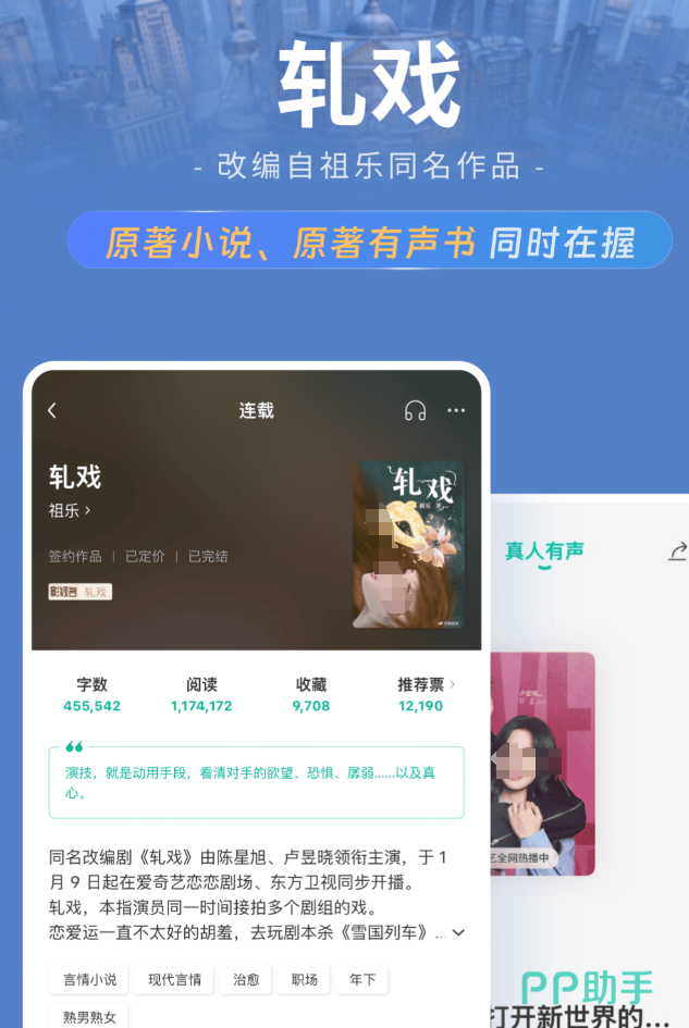 书库体量放在同类平台里算是数一数二的,正版电子书加上品牌杂志,加起来超过46万册,免费小说也有10万多本。签约了不少知名网文作者,部分作品还是影视剧的原著,追剧之余补原著的需求也能满足。